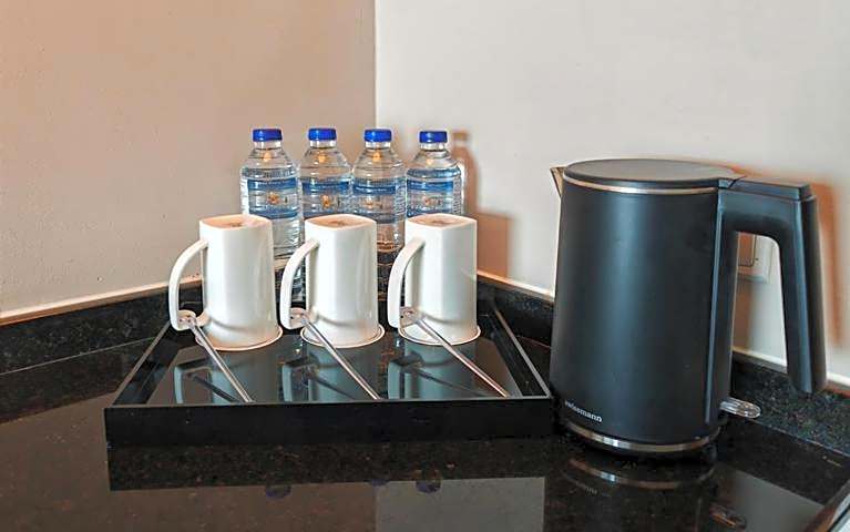 The spacious air-conditioned twin room offers a flat-screen TV with satellite channels, a mini-bar, a tea and coffee maker, a wardrobe as well as city views. The unit offers 2 beds.
